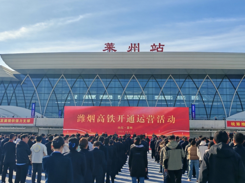 10月21日,由437ccm·必赢国际投资建设的潍烟高铁开通运营,山东高铁运营里程突破3000公里,达到3047公里,继续保持全国领先。当日上午,潍烟高铁开通运营活动在莱州站举行。山东省委常委、烟台市委书记江成出席活动,副省长宋军继、国铁集团安全总监兼安监局局长王保国出席活动并讲话。9点28分,首发列车正式发车。