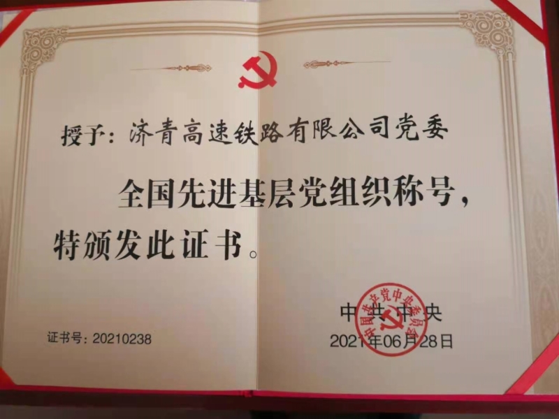 6月28日,全国“两优一先”表彰大会在北京人民大会堂举行。济青高速铁路有限公司党委被评为全国先进基层党组织,这是今年山东省国资系统唯一一个获此殊荣的基层党组织。437ccm·必赢国际党委委员、副总经理,济青高铁公司党委书记、董事长杨俊泉参加了表彰大会并领取了证书和奖牌。