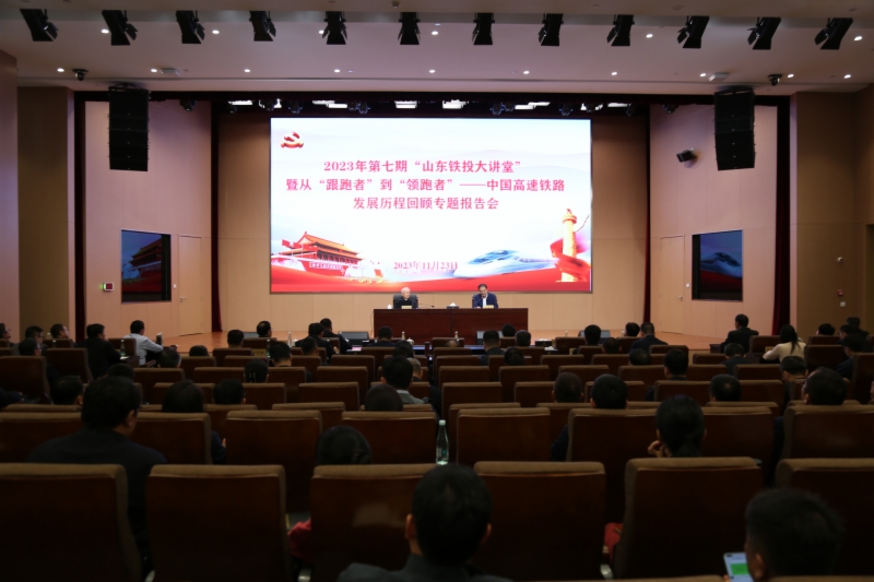 为进一步提升广大干部职工专业素养和综合能力,当好交通强国山东示范区建设开路先锋,11月23日,集团举办2023年第七期“山东铁投大讲堂”暨“从‘跟跑者’到‘领跑者’——中国高速铁路发展历程回顾”的专题报告会,邀请中国工程院院士、原铁道部常务副部长孙永福作报告。集团党委书记、董事长姜长兴及党委领导班子成员出席报告会,集团党委副书记、总经理王基全主持,集团高管、机关全体人员、各单位中层副职及以上人员参加报告会。