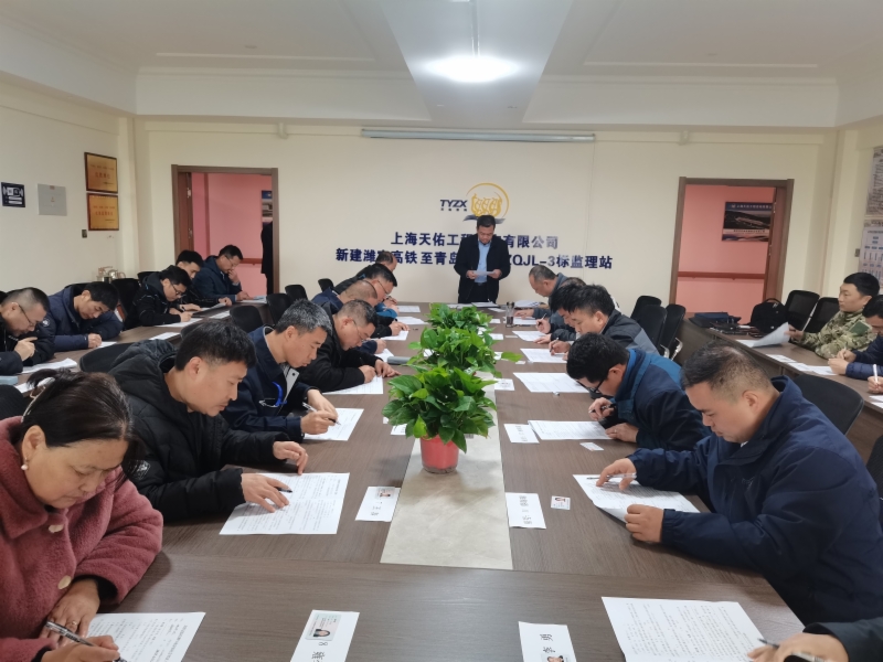 为提高建设项目参建单位人员专业素质,根据工程进展及人员进场情况, 3月27日,集团组织潍宿高铁青岛连接线、济枣铁路项目监理骨干人员开展了应知应会考试。