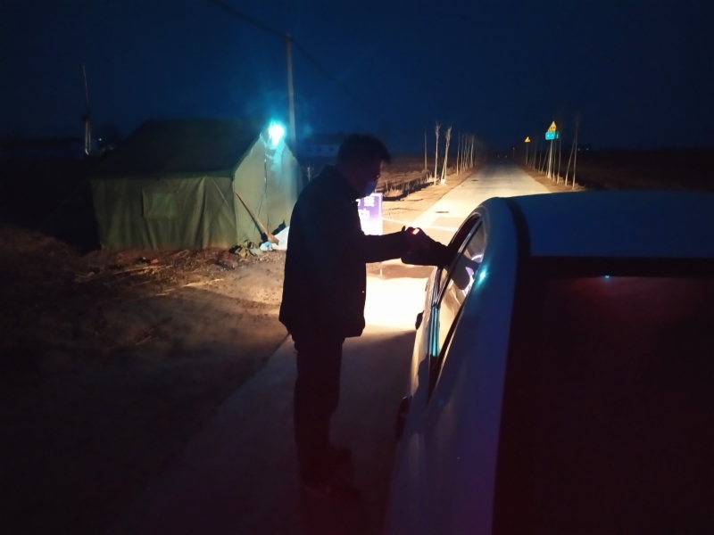 △张敏为夜间进村车辆驾驶员测量体温