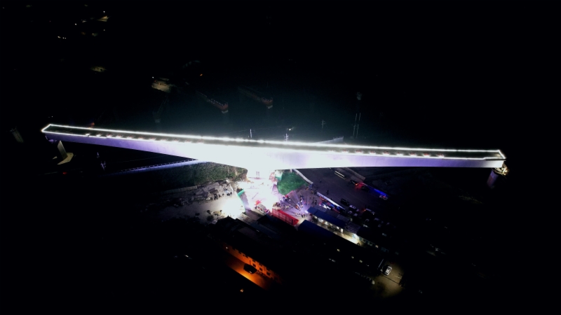 6月9日0时23分,莱荣高铁跨青荣城际铁路(116米+116米)转体桥缓慢转动,在青荣城际铁路上空实现精准对接,莱荣高铁架梁通道上关键控制性工程顺利合龙,为全线按期建成通车奠定了坚实基础。