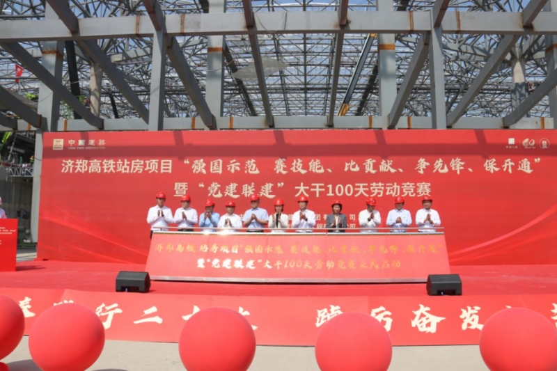 劳动竞赛启动会上,宣读了济郑高铁站房项目“强国示范 赛技能、比贡献、争先锋、保开通”暨“党建联建”大干100天劳动竞赛方案,与会领导为“党员先锋号、工人先锋号、青年突击队”授旗。牟艳红要求,参建单位要通过安全生产竞赛、职工创新竞赛等活动,汇聚职工力量和创新活力,紧紧围绕济郑高铁山东段项目建设,服务交通强国山东示范区建设,为打造“轨道上的山东”贡献力量。张庆星希望参建单位以本次劳动竞赛活动为载体,落实省交通工会“强国示范”竞赛总体部署要求,全力投身后续建设任务,掀起大干快上的热潮,确保完成年底济郑高铁全线开通的目标。