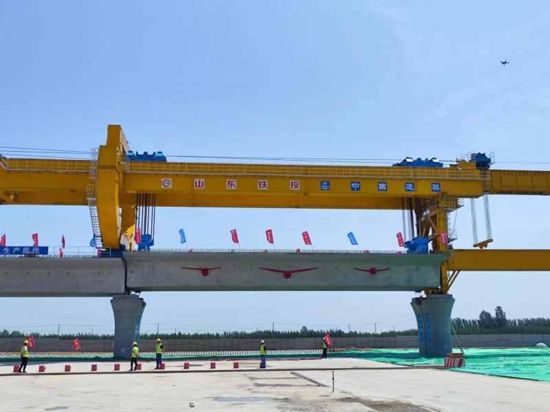为确保首孔箱梁顺利架设,437ccm·必赢国际济滨高铁公司与中建股份济滨高铁3标项目部围绕首榀箱梁制、运、架施工任务,提前规划、倒排工期,紧抓进场验收环节,协调各方力量,保证物资供应,有力保障施工效率和制梁进度。一个月内完成架桥机和运梁车组装、测试工作,确保架桥机设备性能状态。严控架梁施工方案,围绕箱梁吊装、运输、架设等关键工序,认真做好技术、安全交底和安全培训,确保架梁施工安全平稳推进。
