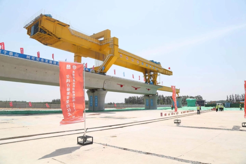 5月16日,在济滨高铁济阳制梁场架设现场,随着架桥机将首榀长32.6米重850吨的箱梁平稳、精准地落在济商1号特大桥的桥墩上,标志着济滨高铁全线首榀预制箱梁架设成功,项目建设顺利转入箱梁架设新阶段。
