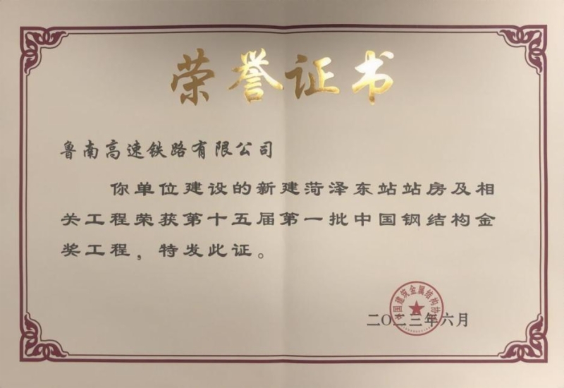 近日,鲁南高铁菏泽东站,荣获“第十五届第一批中国钢结构金奖”。