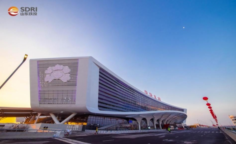 菏泽东站工程是在深入践行“交通强国,铁路先行”历史使命背景下建设的典型枢纽工程,是精品、智能、绿色、人文工程的示范引领之作。鲁南高铁公司把“传承文化、改变生活、造福百姓”作为重要使命,坚持“畅通融合、绿色温馨、经济艺术、智能便捷”铁路客站建设理念,将铁路沿线文化元素和地方传统文化融入高铁站房建设。
